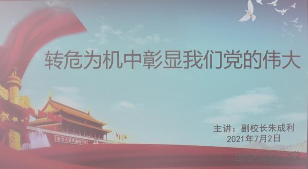 接着,朱校长结合习近平总书记在庆祝中国共产党成立100周年纪念大会上发表的重要讲话内容,进一步明确了习近平总书记重要讲话精神:要不断增强“四个意识”、坚定“四个自信”、做到“两个维护”,立足“两个大局”,心怀“国之大者”,大力弘扬伟大建党精神,在实现第二个百年奋斗目标新的赶考之路上为党和国家教育事业作出新的更大贡献。