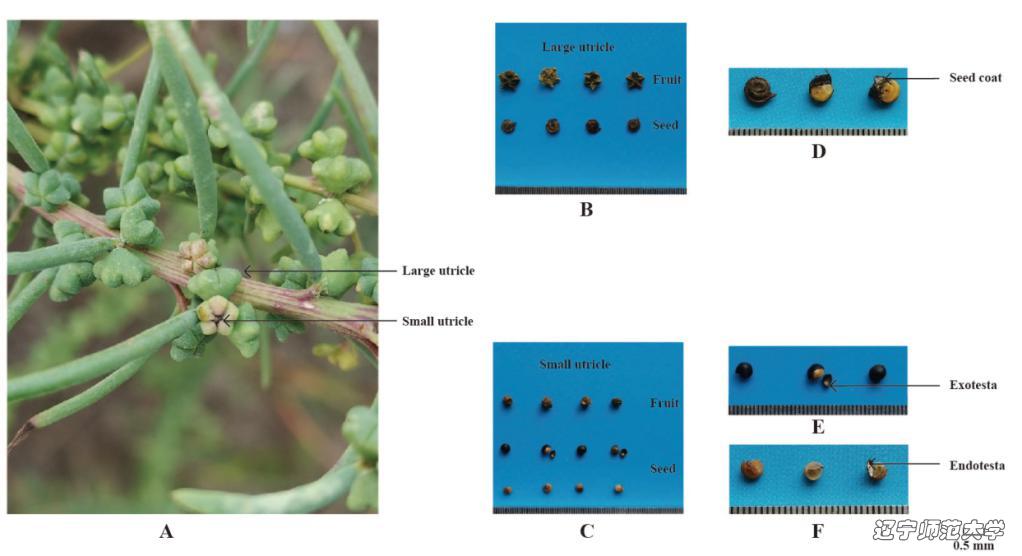 Figure 1. Dimorphic fruits and seeds of large utricles and small utricles of Suaeda glauca.