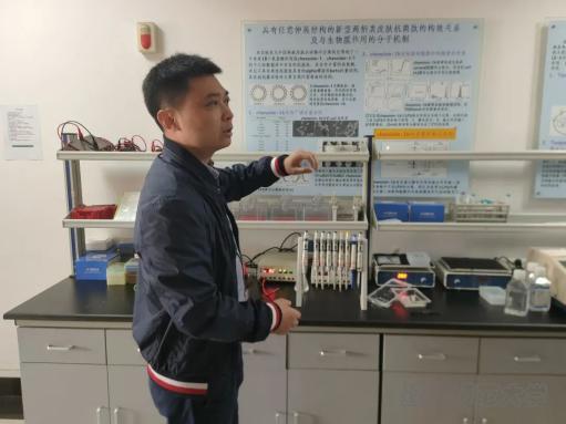 参观伊始,董维兵教授向同学们介绍了欧冠官网实验室的概况:包括一个国家级实验平台,两个省级实验平台,生物学一级学科博士授权点,生物学一级学科硕士授权点,生态学一级学科硕士授权点。
