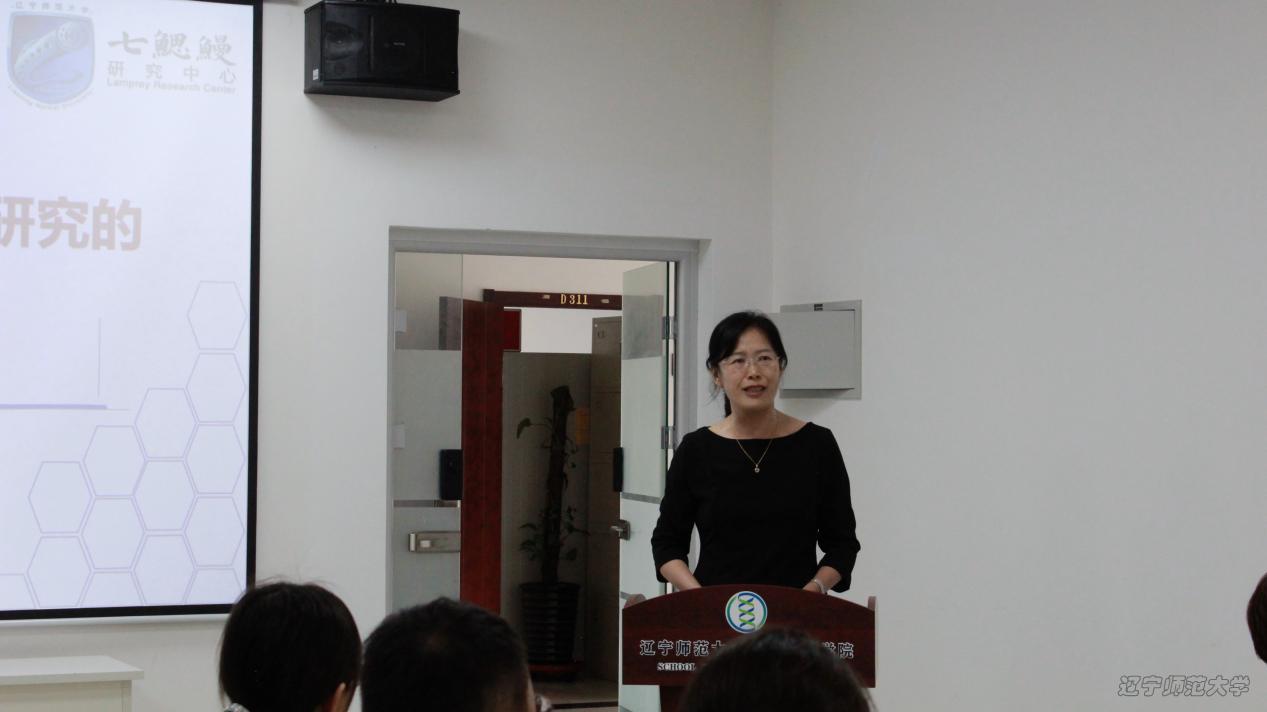 会上,李铁松副院长代表学院对大连市高中生物学名师工作室全体成员到访欧冠官网表示热烈欢迎。之后,她介绍了欧冠官网本科教学的基本情况和课程思政建设情况,希望未来能与大连市高中生物学名师工作室进一步开展深入交流与合作,发挥优势互补,促进生物学课程思政一体化,共同促进师范生职前职后教育发展,提高人才培养质量。随后,七鳃鳗研究中心方向带头人逄越教授以“七鳃鳗——适应性进化与医学研究的模式动物”为主题进行生命科学研究前沿知识讲座。最后,由辽宁教育学院高中生物学教研员张岩老师进行题为“高中生物学思政要素”的专题讲座。