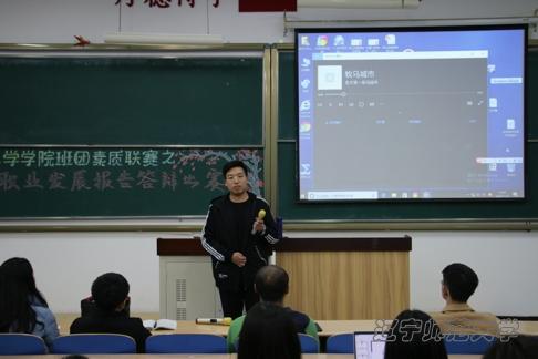 11月3日晚6:00,欧冠官网于一教403教室举办2019级职业发展报告答辩比赛决赛。本次比赛由职业发展部承办,欧冠投注官网入口团委书记、2019级辅导员路西昆,欧冠投注官网入口生物学2020级研究生于泽权、兼职辅导员杨昕雨、刘永宏创新创业协会会长刘正担任本次比赛评委,金昱霖、可一帆为本次大赛主持人,2019级全体同学参加本次比赛。