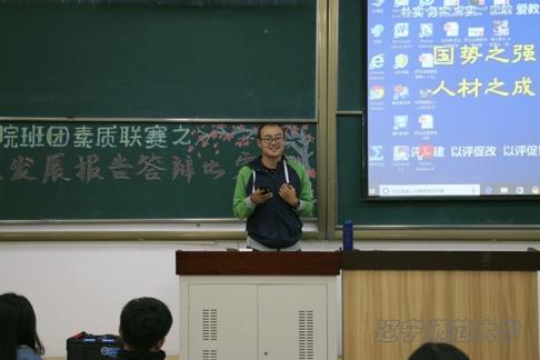 最后,路老师对比赛做总体评价。首先,路老师对三位评委的到来表示感谢。紧接着,路老师表示本次答辩比赛很精彩,选手们准备得很充分,态度也很端正。此外,路老师指出选手们答辩过程中的一些问题所在。本次比赛,有些选手存在答辩时间超时现象,路老师强调同学们一定要加强时间观念,在复试、面试等正式场合一定要注意时间的掌控。他希望通过本次比赛,同学们能够强化“规划意识、反思意识、持续进步意识、乐观意识”,积极争取并珍惜每一次上台的机会,努力为自己赢得一个充实而有意义的大学生活。