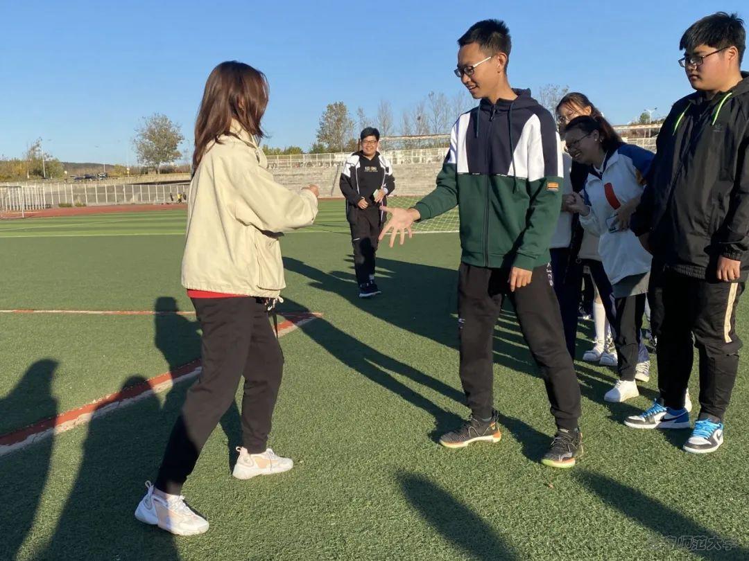 首先,教练们带领大家进行了热身活动,有滚雪球和狙击枪等游戏,这些游戏帮助同学们迅速地记住了同组同学的姓名,有力地拉近了同学们之间的关系。