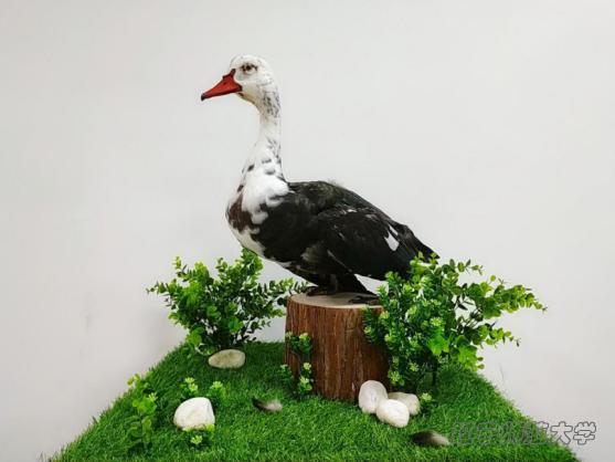 本标本选用我国本土经济鸡种:芦花鸡和五黑鸡。标本造型采取自然界中常见的两雄性公鸡相互争斗,抢夺交配权后一方胜利、一方战败的姿态,展现了雄鸡斗胜后高昂的气势。魁既表现了胜方魁梧的姿态,也意味着胜后获得魁首。