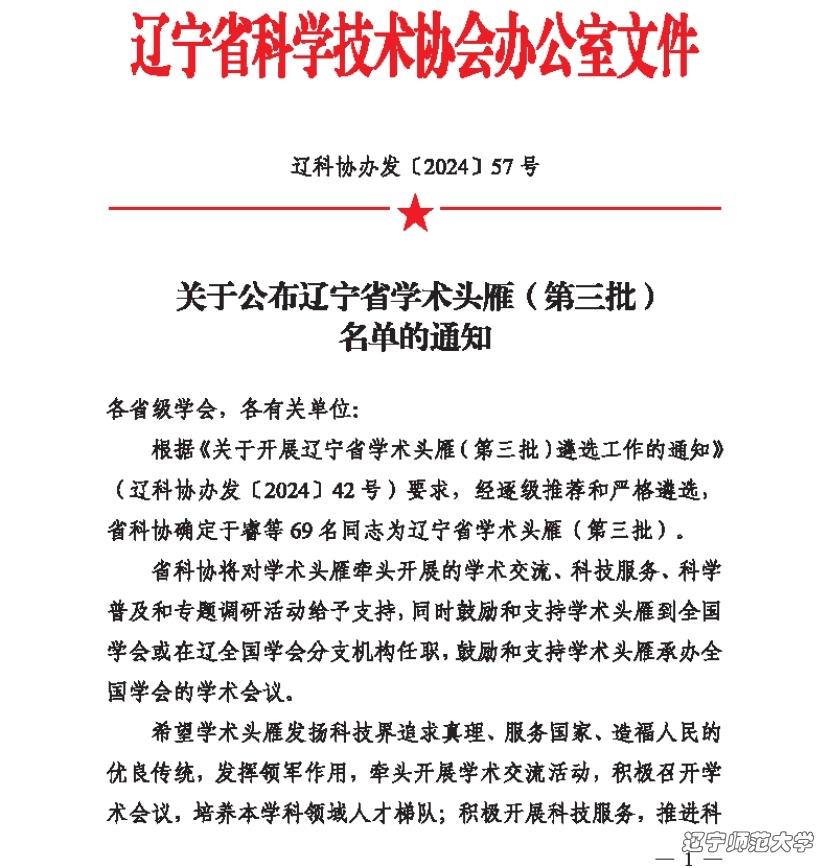 近日,辽宁省科学技术协会公布了第三批辽宁省学术头雁遴选结果,经逐级推荐和严格遴选,省科协确定69名同志为辽宁省学术头雁,欧冠官网董维兵教授成功入选。